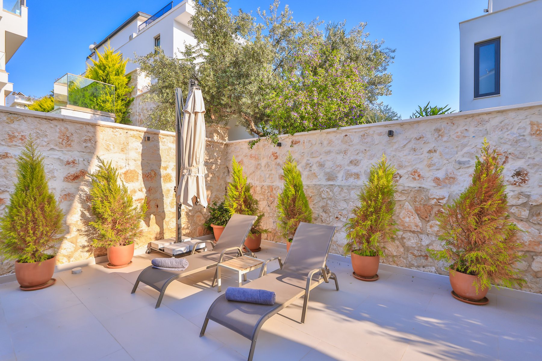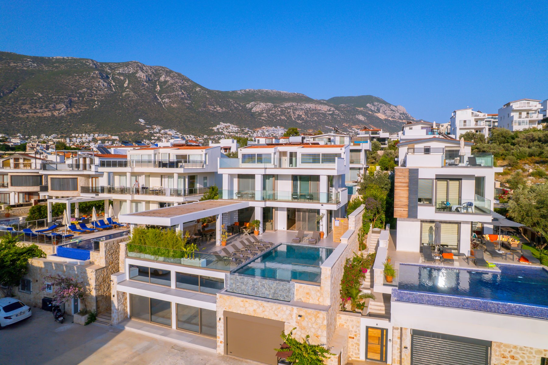 Kalkan’ın plaj kulüplerine, restoranlarına, eski şehir merkezine ve marinaya sadece birkaç dakika mesafede.