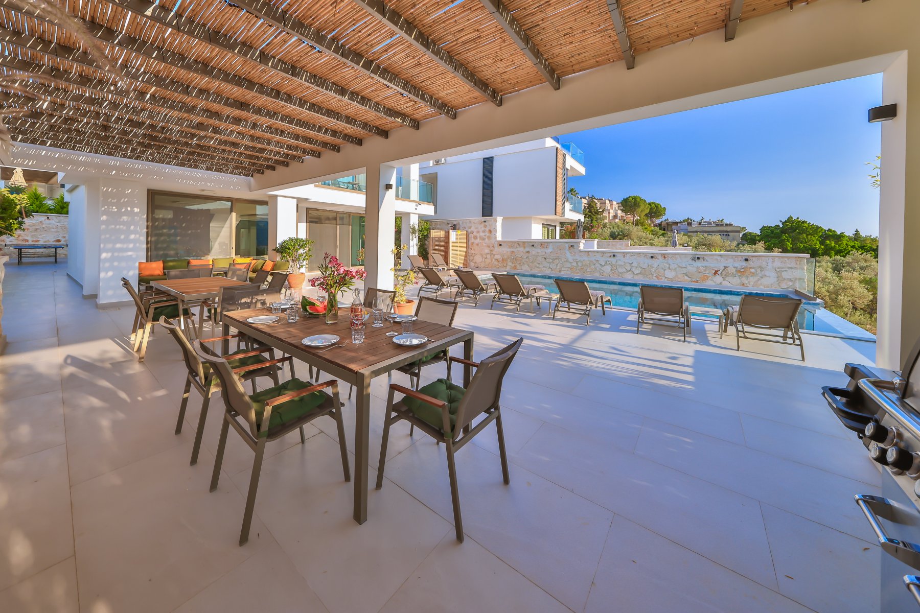 Bu villa; alan, stil ve zarafeti bir araya getirerek lüksü arayan misafirler için eşsiz bir deneyim sunuyor. Güne sabah yüzmeleriyle başlayıp, gün batımı eşliğinde barbekü keyfiyle devam ederken; burada geçireceğiniz her an unutulmaz olacak.